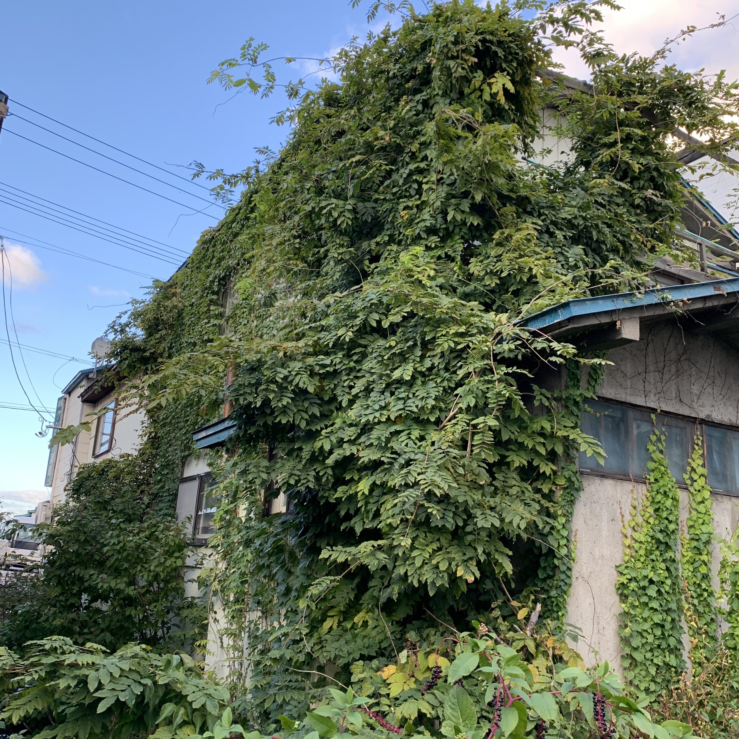 草刈り、壁のツタ取り